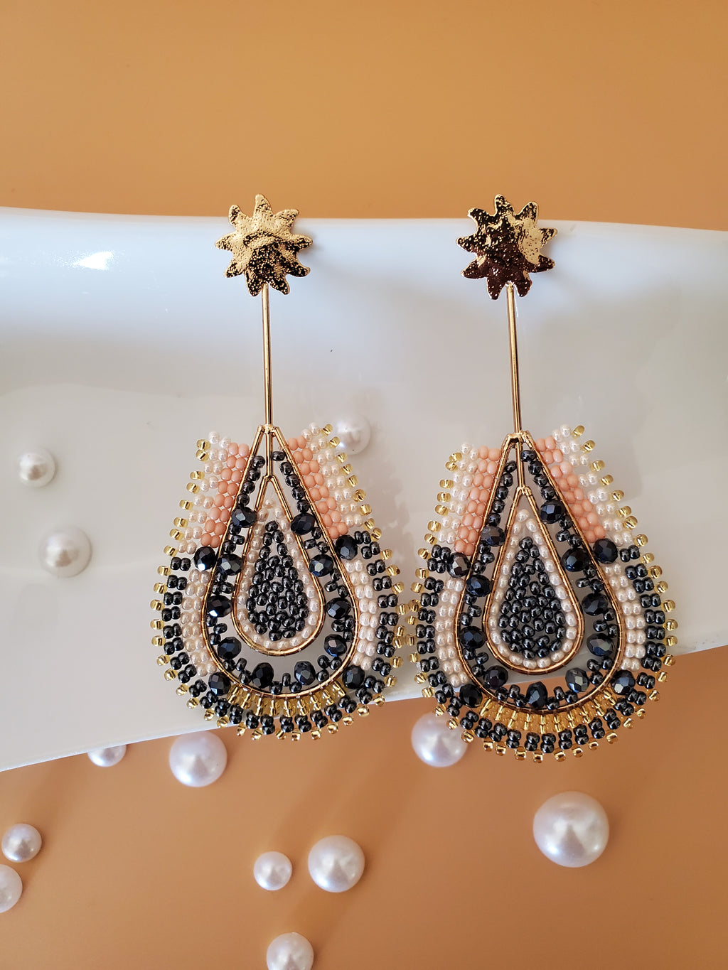 Gray & Peach Long Earrings