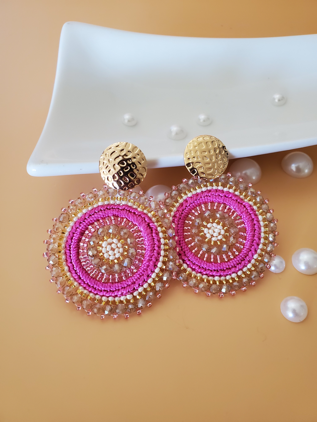 These stunning luminous earrings are hand- Knitted with czech crystals and finished with 24k gold-filled  studs .